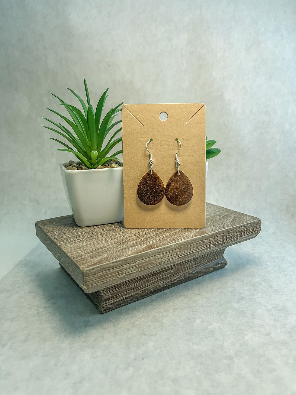 Resin and Wood Circle Earrings - Teardrop